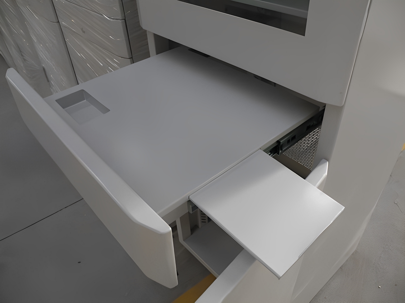 可抽拉层板,三段式前门结构。